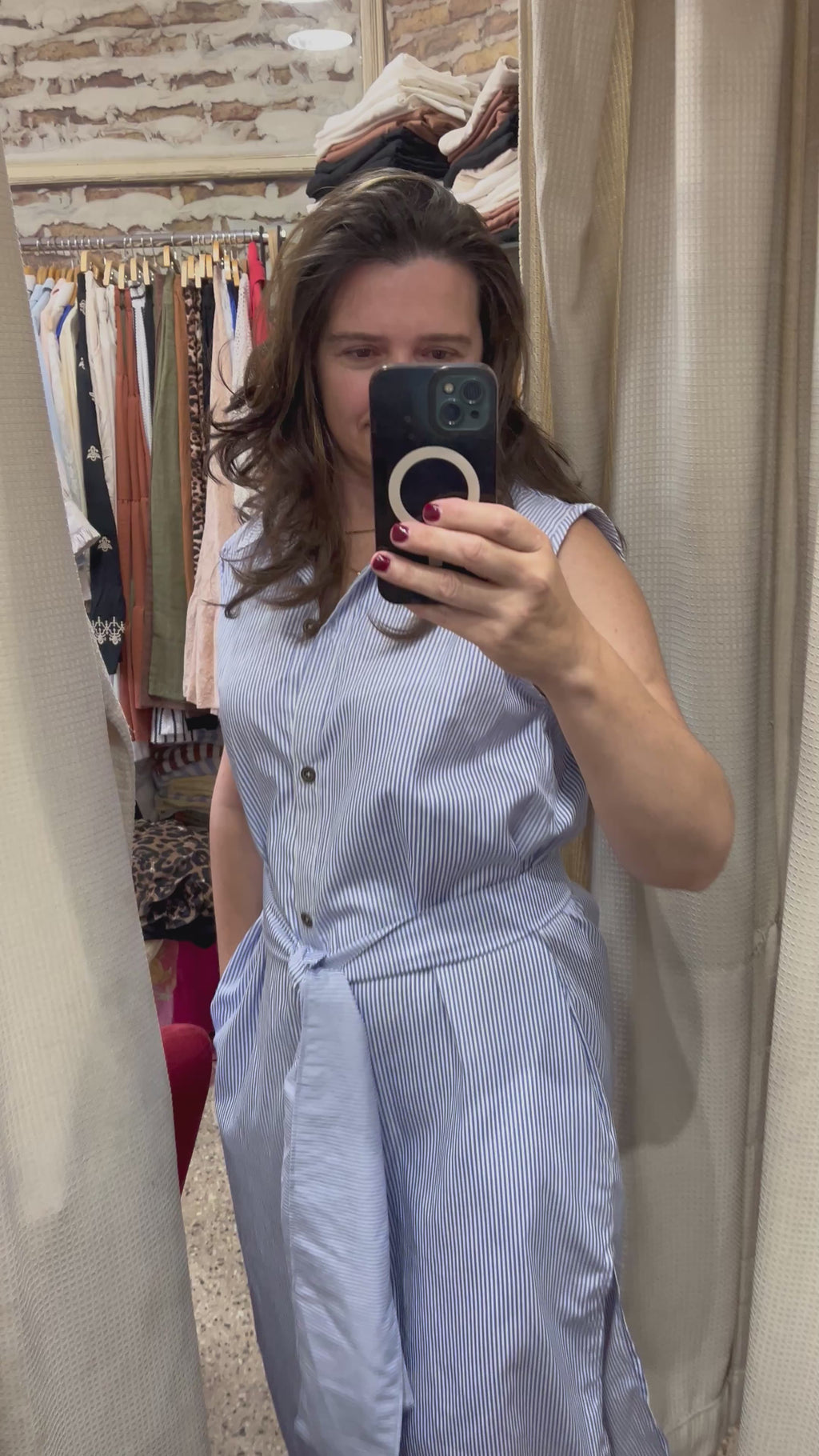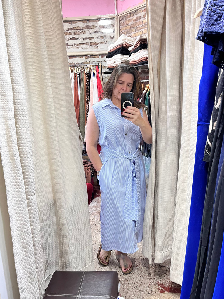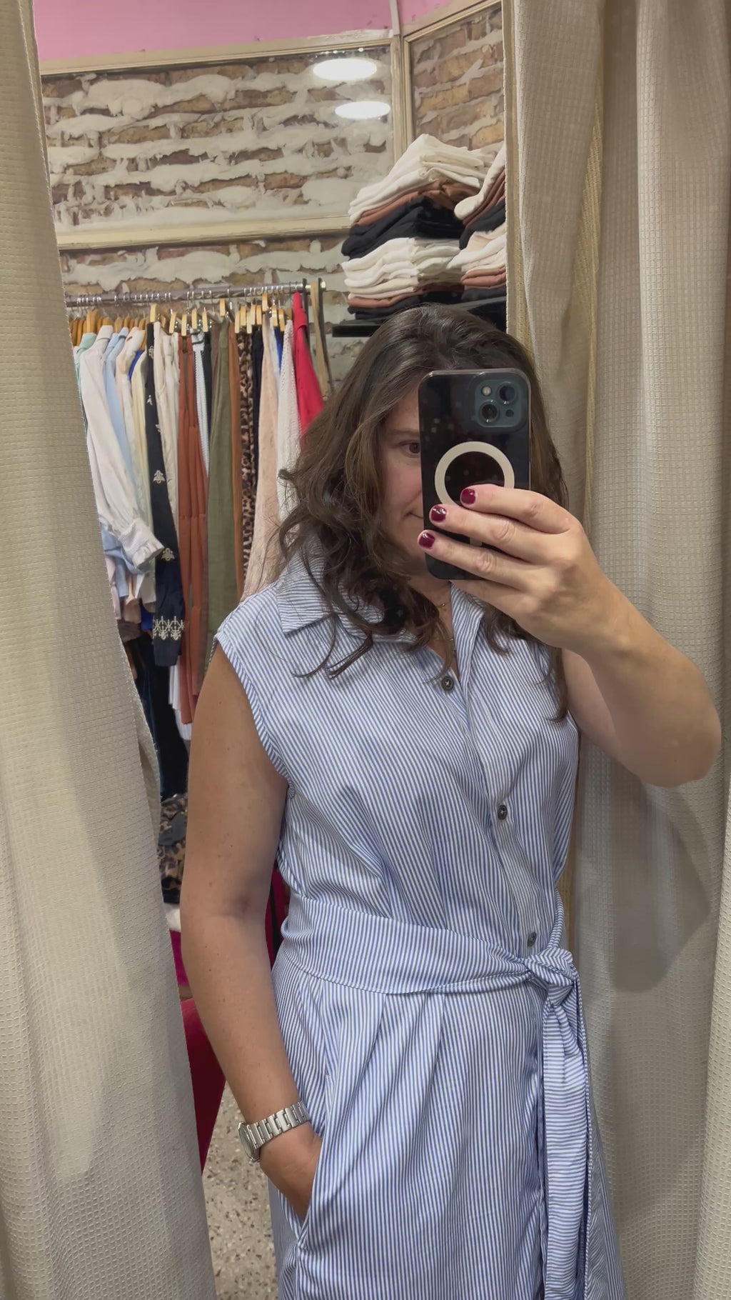Vestido camisero sin mangas , tiene lazo y bolsillos