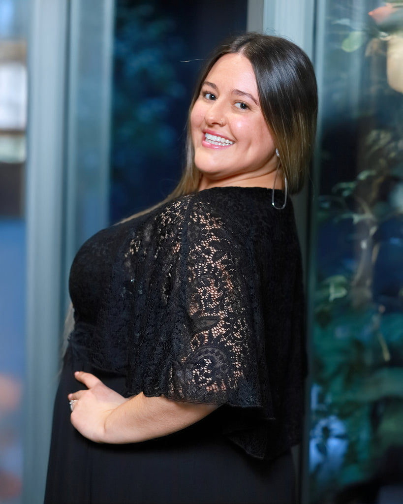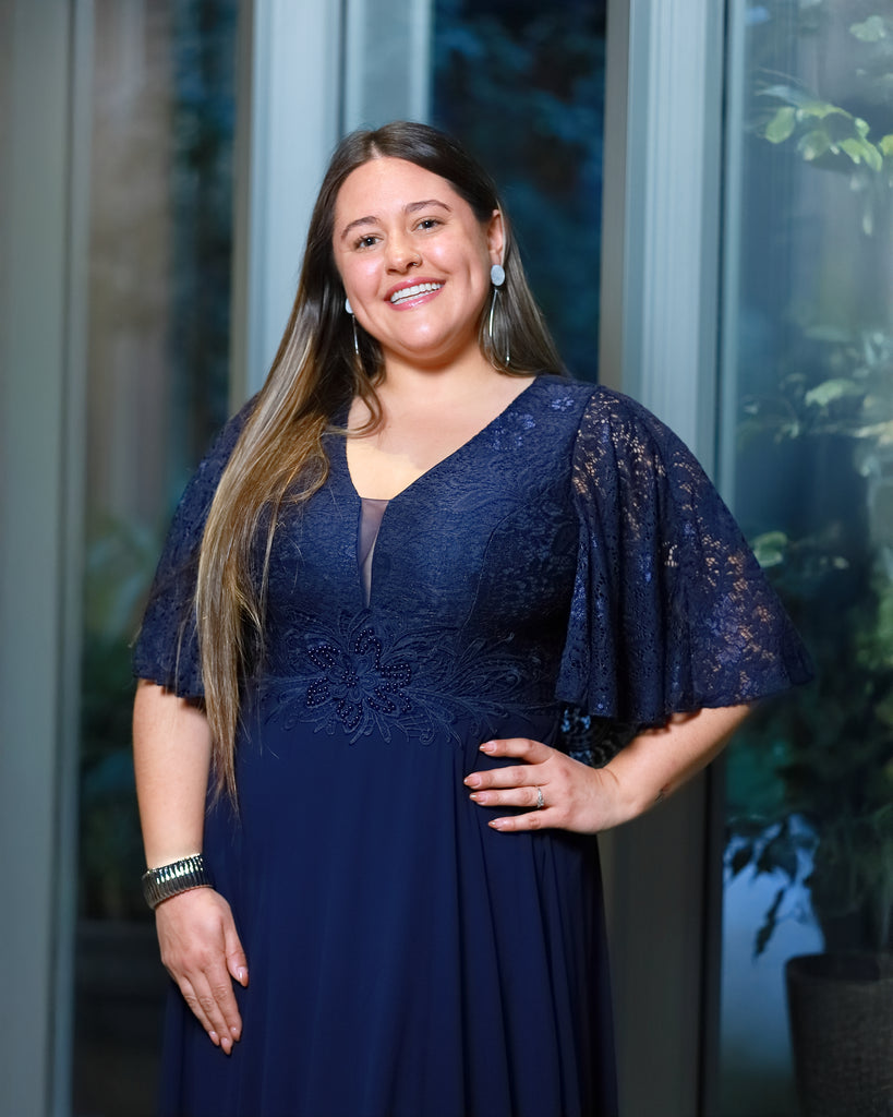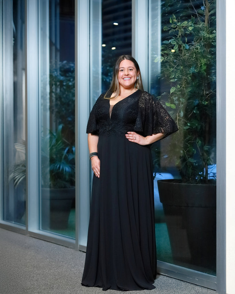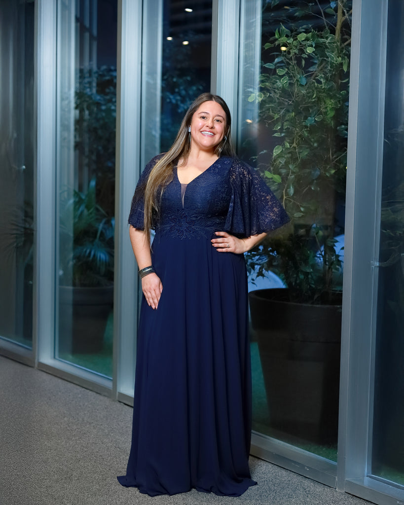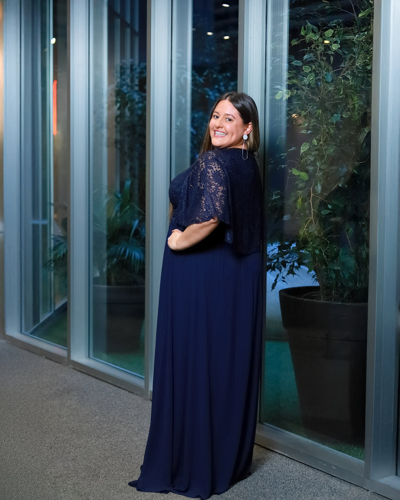 Vestido de gasa largo con mangas tipo capa de encaje y espalda elastizada